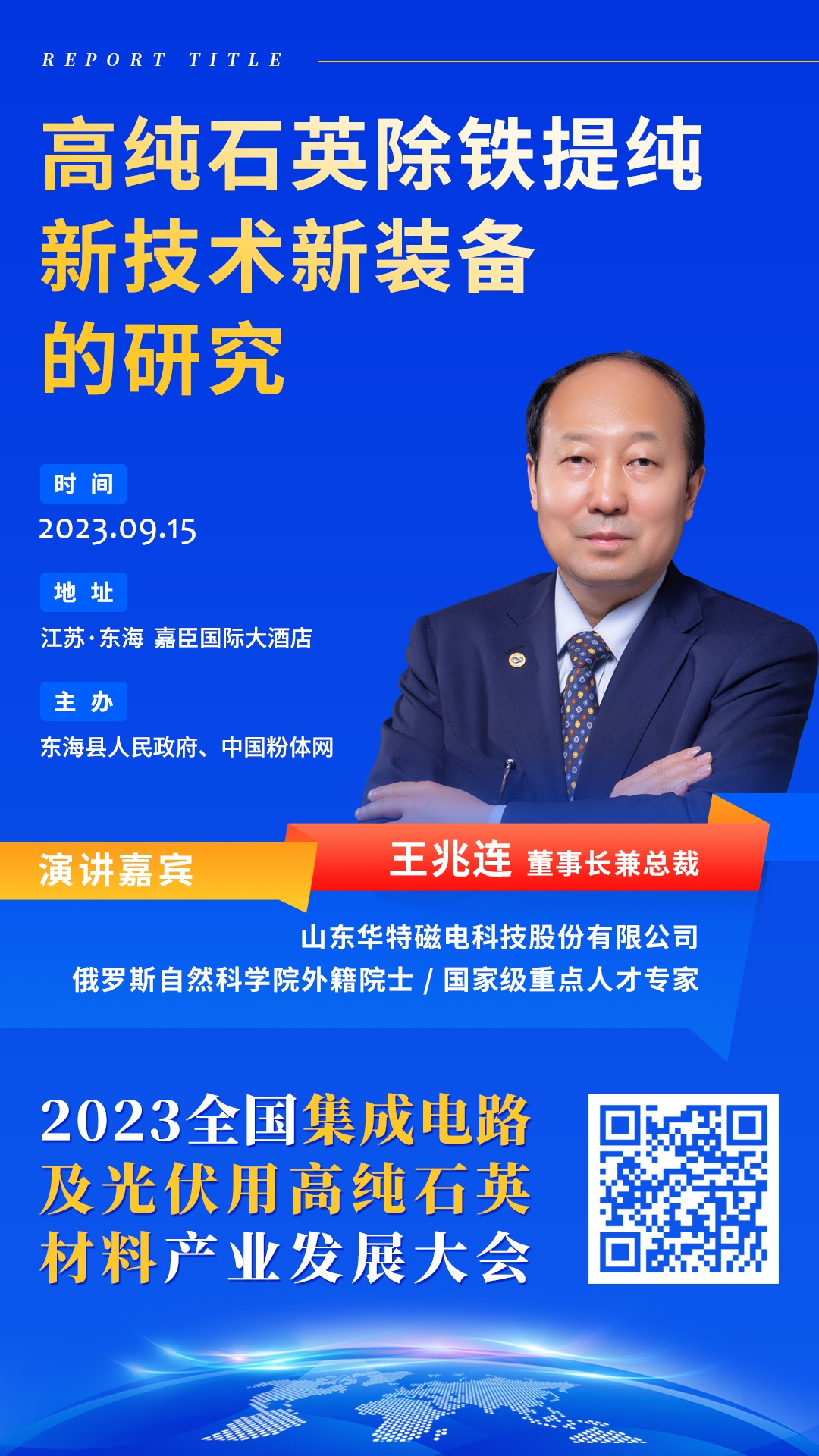 2023??5日,中国粉体罐/strong>将在江苏东海举办?023全国集成电路及光伏用高纯石英材料产业发展大会“/strong>。届时,山东华特磁电科技股份有限公司董事长兼总裁王兆违/strong>将带来题丹span style="color: rgb(192, 0, 0);">《高纯石英除铁提纯新技术新装备的研究《/strong>的报告,华特磁电在磁选装备领域深?0年,有着丰富的选矿经验。届时,王董将为我们介绍哪些新的除铁工艺和装备呢?让我们拭目以待、/p>