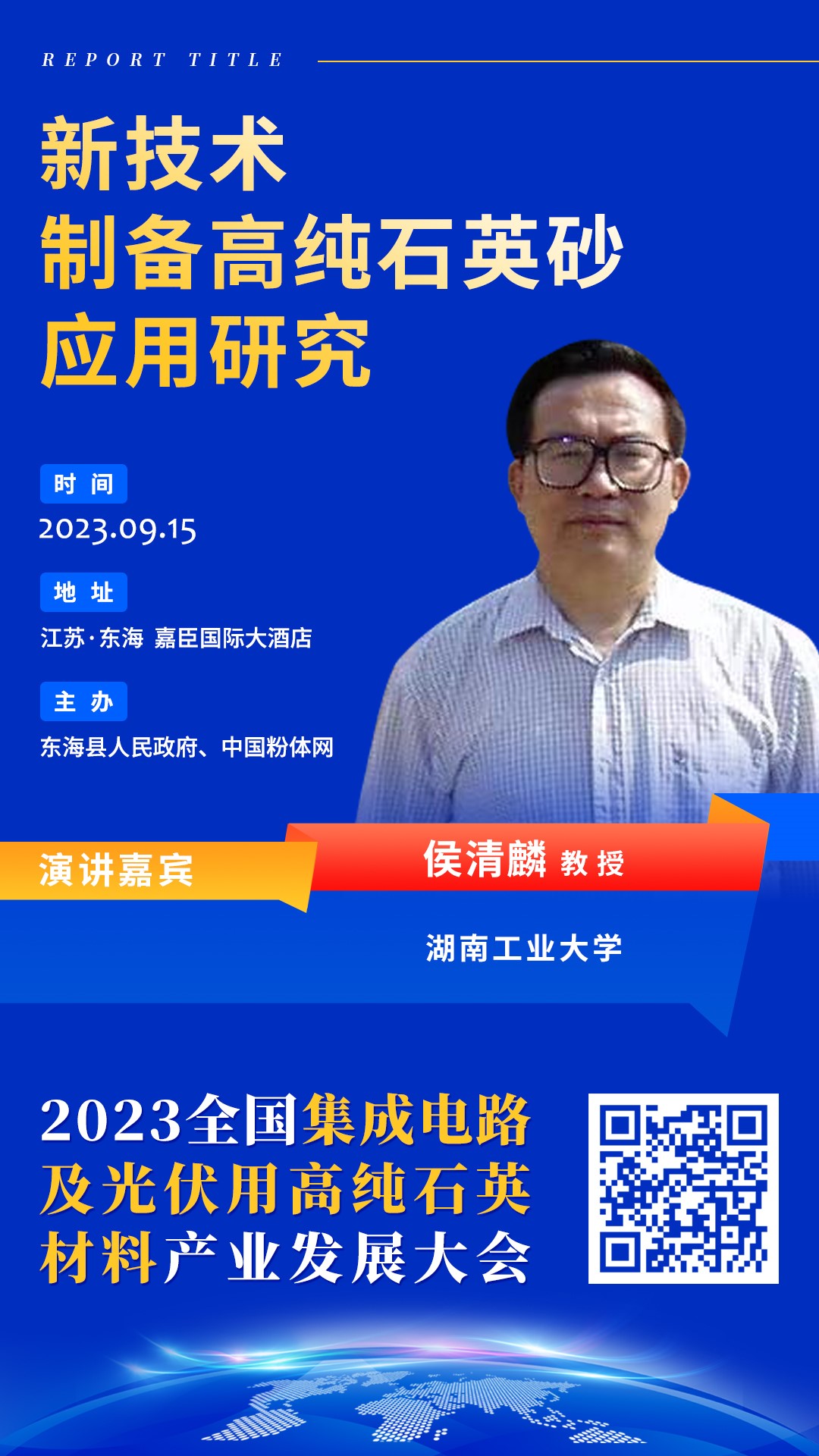 2023??5日,中国粉体网联合东海县人民政府将于东海县嘉臣国际大酒店举办?023全国集成电路及光伏用高纯石英材料产业发展大会”,届时,来自湖南工业大学的侯清麟教授将作《新技术制备高纯石英砂应用研究》报告,详细讲述高纯石英砂新工艺的研究及应用、/p>