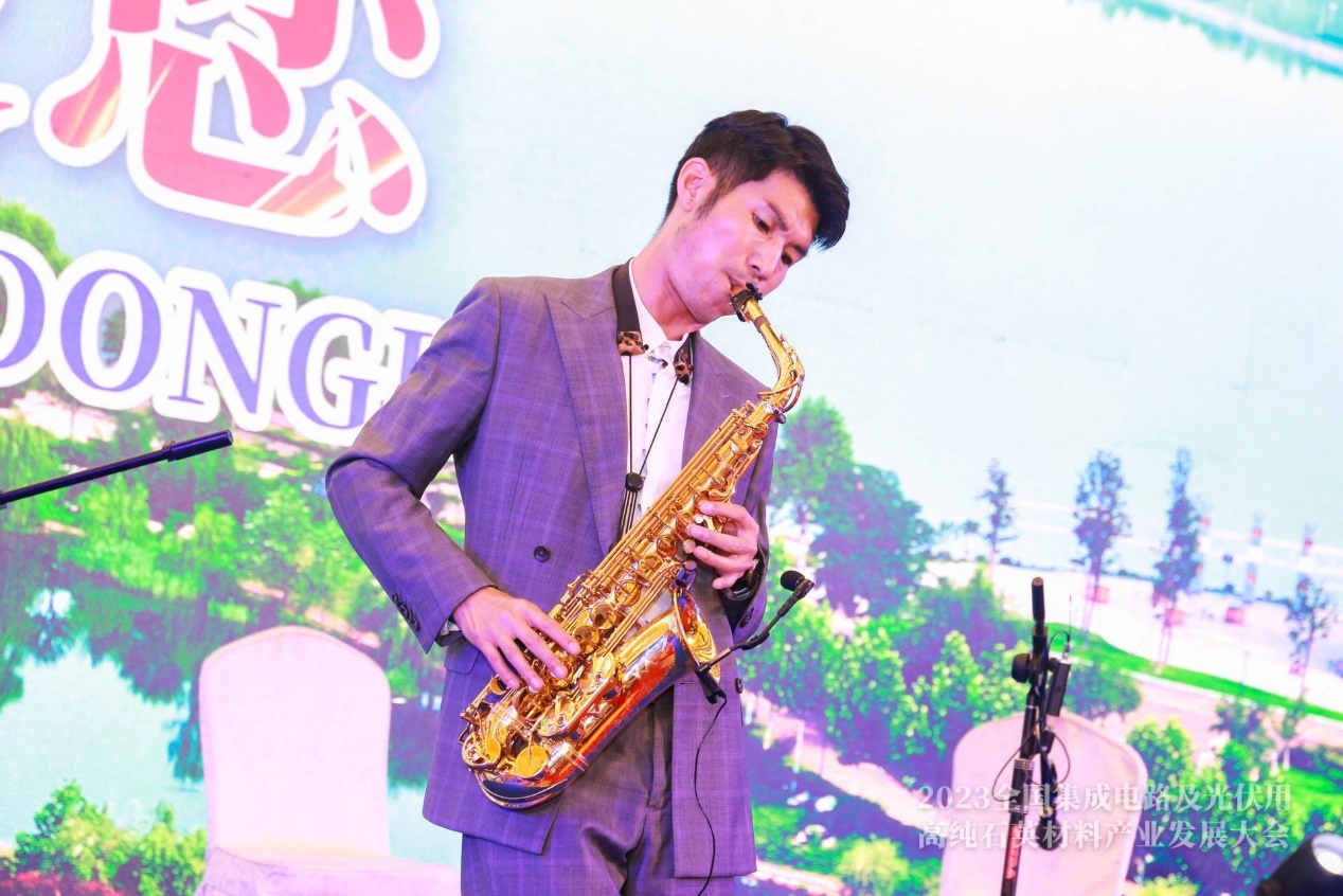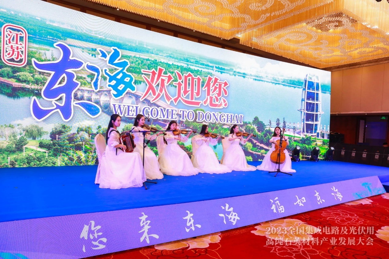 9?4日晚,东海县政府举办了“产业中 大美晶都”接待晚宴。晚宴主要分为两部分。第一部分为会议环节,由东海县县委副书记、县长张其兵主持,连云港市副市长、县委书记宋波致辞,薛剑副县长推介东海;企业供销合同集中签约。第二部分是餐叙环节,主办方组织了现场互动活动和精彩的文艺表演,为高纯石英材料产业的发展送上祝福。赴宴人员相互交流,各抒己见,宴会现场欢歌笑语!