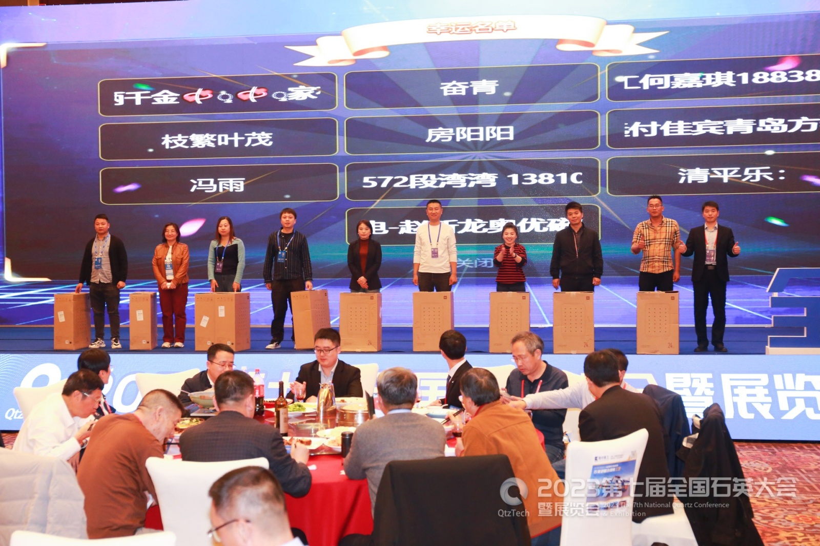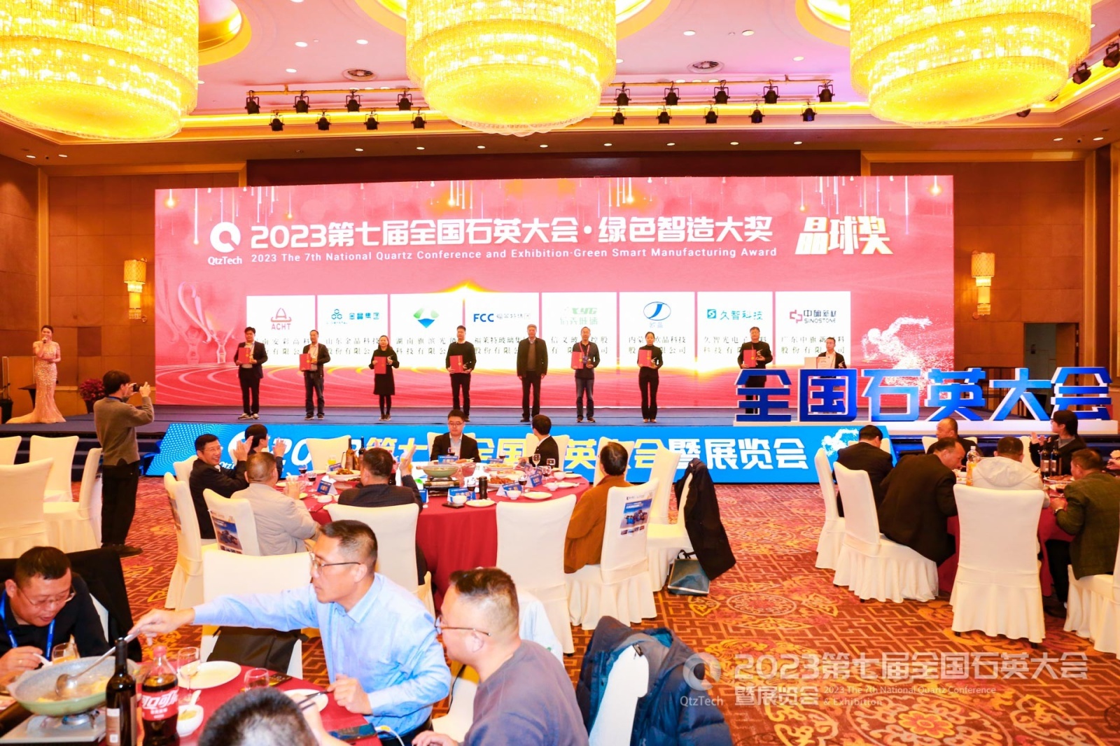 为促进参会代表之间的互动交流?1?6日晚,中国粉体网举办了“谷鑫之 答谢晚宴”。晚宴开始,首先进行的是?023全国石英大会?绿色智造大奖”晶球奖颁奖典礼,久智光电子材料科技有限公司、内蒙古欧晶科技股份有限公司?家企业荣获此次绿色智造大奖晶球奖。同时,4家企业荣获“杰出贡献奖”,42家企业荣获“优秀供应商”称号、br/>