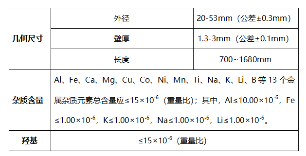 石英衬套管主要技术指栆/span>