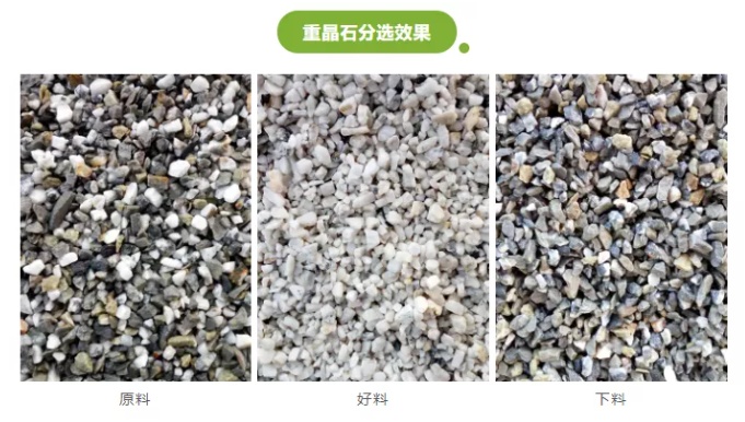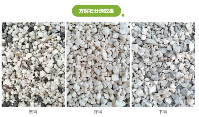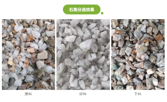 机器采用?048像素的高分辨率全彩色CCD传感器,能识别出细微的色差和极小的瑕疵,512个高精度喷嘴能够准确地吹选矿石,选净率高?9%,此外独有的图像处理算法,降低了物料的带出比,最优带出比(坏:好)大?:1、/p>