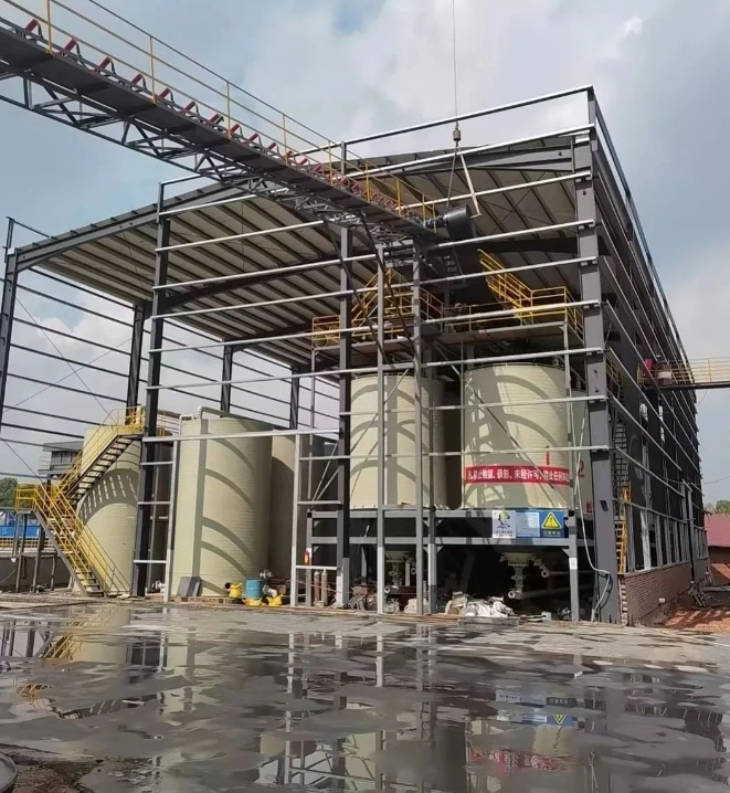 首先开启电加热装置配兑酸液加热备用,将物料通过输送方式进入提升机(或输送带),经提升机(或输送带)将物料送入酸洗反应罐。将配兑好的酸液经酸泵抽入酸洗反应罐内,酸洗进入物料时间约一小时,开启酸循环、/p>