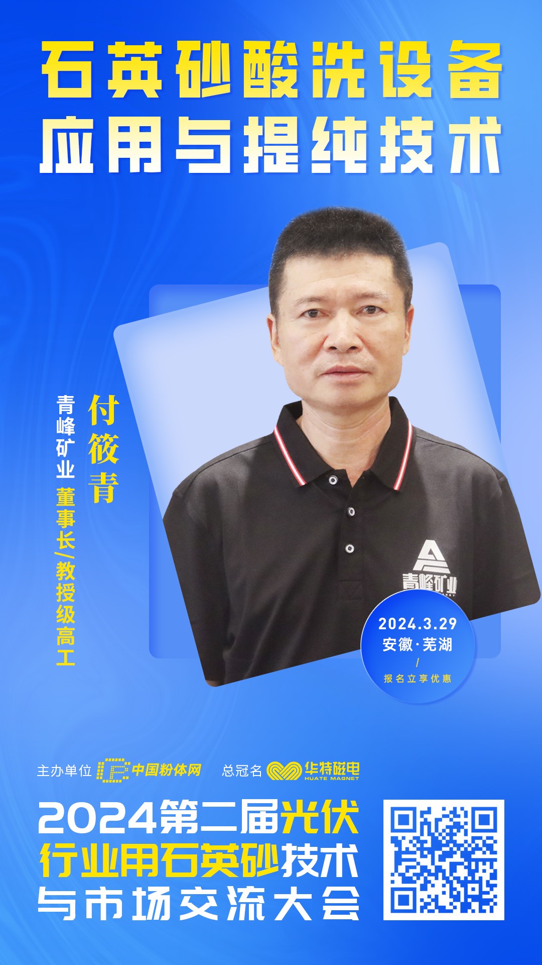 2024??9日,中国粉体网将于安徽·芜湖悦园方酒店举办“第二届光伏行业用石英砂技术与市场交流大会”、span style="color: rgb(192, 0, 0);">来自青峰矿业的付筱青董事?教授级高工将作《石英砂酸洗设备应用与提纯技术》报告、/strong>
