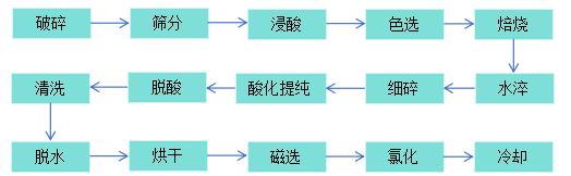 生产过程主要以石英石毛料为原料,以盐酸、氢氟酸、等为辅助材料,通过破碎、筛分、浸酸、色选、焙烧、水淬、细碎、酸化提纯、脱酸、清洗、脱水、烘干、磁选、氯化、冷却等工序生产高纯石英码/span>:/span>