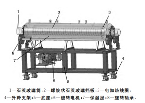 将经过前期处理烘干后的石英砂送至高温氯化炉进行氯化,高温氯化炉内部为石英管,长度约为6.5m,石英砂在石英管中从前端进入,从后端输出后高温氯化工艺即完成、/span>