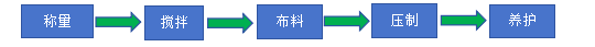 压线生产线主要包括称量区,搅拌区,布料区,压制区以及养护区。压线生产线工艺流程如下所示: