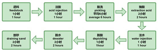 付董事长9/strong>石英砂酸洗的工艺流程一般如下:开启电加热装置,配兑酸液加热备用,将物料通过输送方式进入提升机(或输送带),经提升机(或输送带)将物料送入酸洗反应罐。将配兑好的酸液经酸泵抽入酸洗反应罐内,酸洗进入物料时间约一小时,开启酸循环。酸液反应温度控制为 60~75℃(自动恒温),开启空压机,使物料在反应罐中翻滚,达到物料受酸均匀目的,物料酸洗时间为 4~12 小时(酸浸时间视物料及产品要求而定),加热酸洗过程中所产生的酸雾经过碱水喷淋后经酸雾净化系统处理达标排放。酸洗完毕酸液抽至储酸罐储存进行循环使用,酸洗反应罐内装有脱酸筛网,达到酸砂分离目的,筛网目数根据物料要求粒度选装、/p>