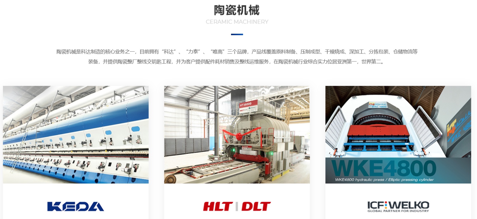 历经30年的创新发展,在建材机械领域,公司一举实现“陶机装备国产化”、“做世界建材装备行业的强者”的历史目标,出色完成从单一设备制造商向陶瓷整厂整线工程供应商的转变,成长为我国乃至世界陶瓷机械行业的龙头企业、/span>
