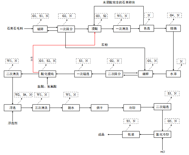 拟建项目高纯石英砂生产工艺流程及产污环节国/p>