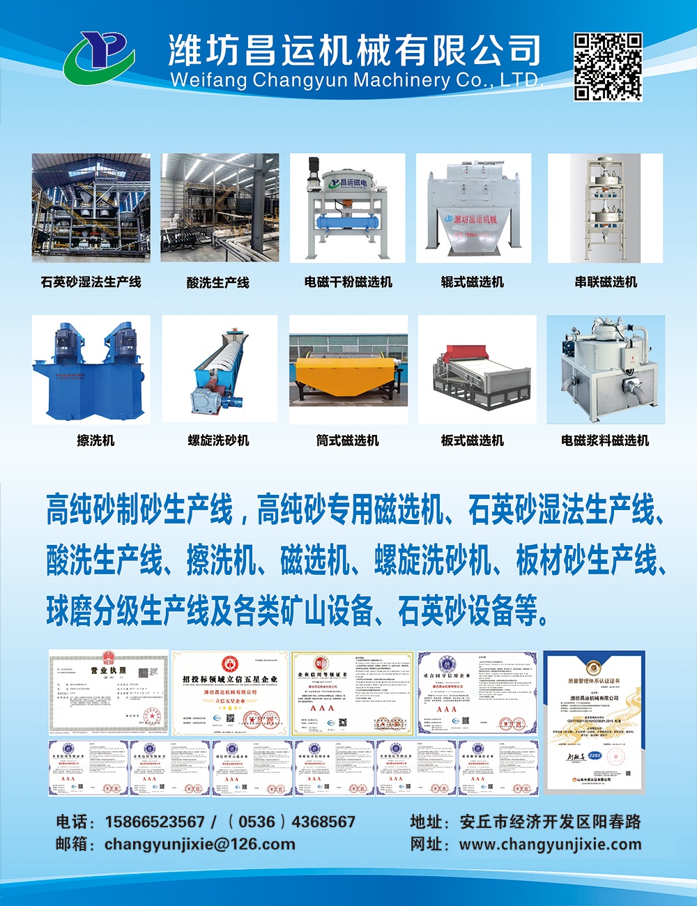潍坊昌运机械有限公司——是一家集科研开发、工程设计、生产安装、调试服务于一体的生产石英、长石、化工、铁矿、煤矿专用设备和提供非金属矿的生产试验、设计、制造、安装、售后服务为一体的现代化企业。服务范围设计矿山、电力、造纸、玻璃、化工、水泥等行业、/span>