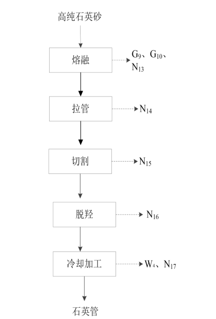 高纯石英管的生产工艺流程为:熔融、拉管、切割、脱羟、冷却加工、/p>