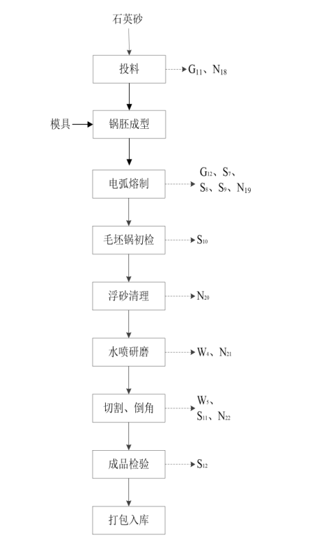 浮砂清理:冷却后将附着在毛坯锅外表面少量未熔的石英砂通过表面清理设备吸取去除,收集的石英砂回用于投料工序、/p>