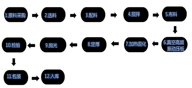 真空高频振动压板:布料完成后,输送至真空振动压机中,在接?0.1MPa的真空条件下进行振动压制,以保证台面致密无气孔、/p>