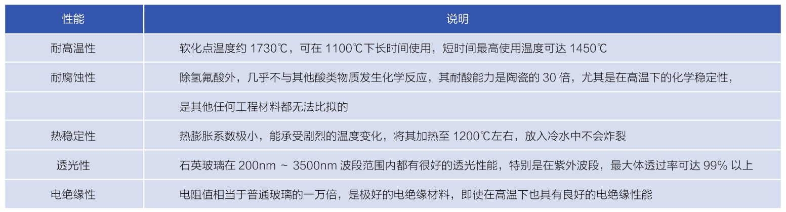 石英玻璃的成分为二氧化硅,具有独特而优异的性能,如透过率高、光学均匀性优异、热膨胀系数低、耐热性好、化学稳定性高、电绝缘性能和耐激光损伤性能好等特点,被誉为“玻璃之王”,是半导体、光通信、光伏、光学仪器、核工业、国防军工领域不可替代的关键原材料、/p>