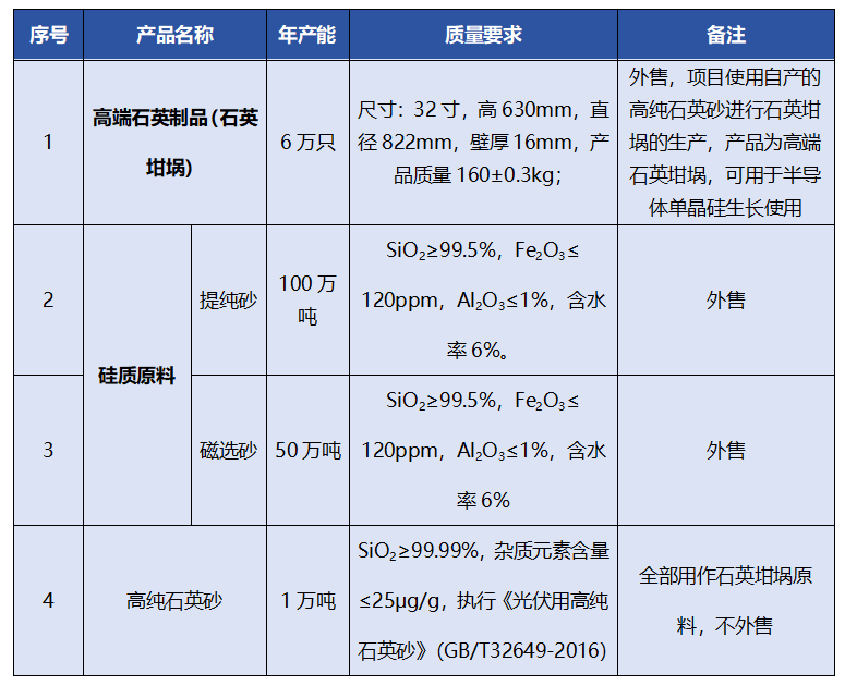 安徽奕鑫新材料有限公司年?万只石英坩埚及硅质原料项目总投?.5亿元,新建酸洗车间、海洋砂生产车间、高纯石英砂生产车间、石英坩埚生产车间等配套基础设施建筑,项目建成后,生?万只石英坩埚?50万吨硅质原料,其中硅质原料包?00万吨提纯砂?0万吨磁选砂,及石英坩埚原料1万吨的高纯石英砂、/p>