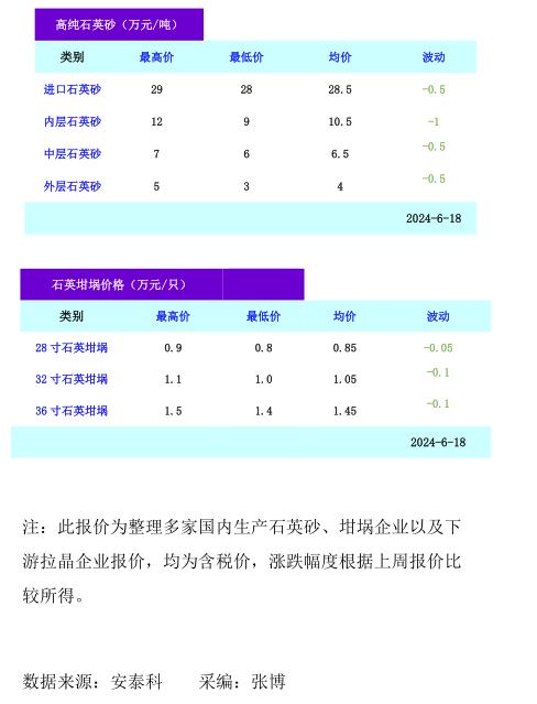 具体来看,进口石英砂均价28.5万元/吨,较上周下?.5万元/吨;内层石英?0.5万元/吨,较上周下?万元/吨;中层石英?.5万元/吨,较上周下?.5万元/吨;外层石英?万元/吨,较上周下?.5万元/吨、/p>