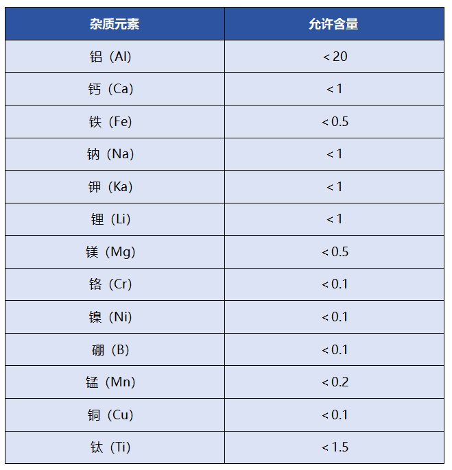 半导体用透明石英玻璃管、棒杂质含量要求