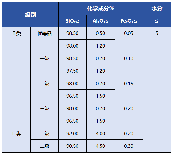铸造用硅砂按照SiO2含量分级和各级的化学成分