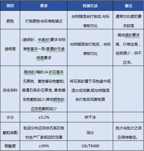 石英石板材对石英砂的质量要求