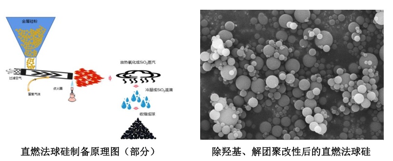由于火焰熔融球硅属于天然矿物粉体熔融球化,因此在纯度和粒径分布方面存在一定限制,少数国外领先企业采用VMC制备方法,即通过金属硅粉直接与氧气反应,从而制备纯度较高、粒度小、粒径分布相对可控的二氧化硅微球、/p>
