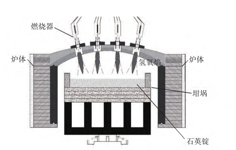 将含硅、含钛的原料混合均匀后,通过氢氧气燃烧器发生水解反应形成掺杂二氧化钛的二氧化硅微粒,微粒由气流引导沉积至坩埚内,通过旋转及自由流动铺满坩埚,依靠坩埚控制成型即可得到超膨胀合成石英玻璃。硅原料主要选用含硅皃span style="text-indent: 2em;">有机化合物如四氯化硅、四氟化硅、八甲基环四硅氧烷等,钛原料选用如四氯化钛、四异丙氧基钛、四(二甲氨基)钛等。为使原料混合更加均匀,通常将原料预先进行气化,以气体状态参与后续反应。在整个反应过程中包含氧化与水解两类反应,相较于氧化反应,水解反应更容易发生,但当氧气过量即氧气和水蒸气共存时,氧化反应和水解反应则可能会同时进行、/span>