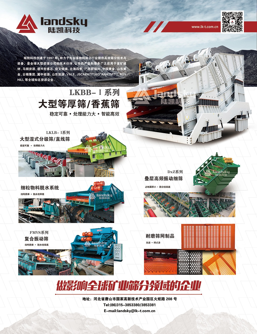 陆凯科技创建?997年,位于河北省唐山市高新技术产业园区,长期专注于高效筛分技术及装备研发制造、/p>