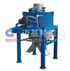 MJT-DF系列电磁干粉高梯度磁选机是我公司专门针对干粉物料研究开发的一种新型除铁设备,是矿山、耐火材料、陶瓷、玻璃、化工、石英等行业的高纯除铁设备,能除去小颗粒或粉状非磁性原料中的铁磁杂质。其效果达到国内外同类产品领 先水平。采用油水复合冷却,磁场强度高达30000GS,吸力强大,抓捕力强,不仅可以将原料在研磨过程中产生的机械铁基本除净?除铁效果高达98%),而且一般永磁除铁设备难以去除的原矿中氧化铁(Fe2O3)也可以除去一部份,除铁效果卓越、/p>