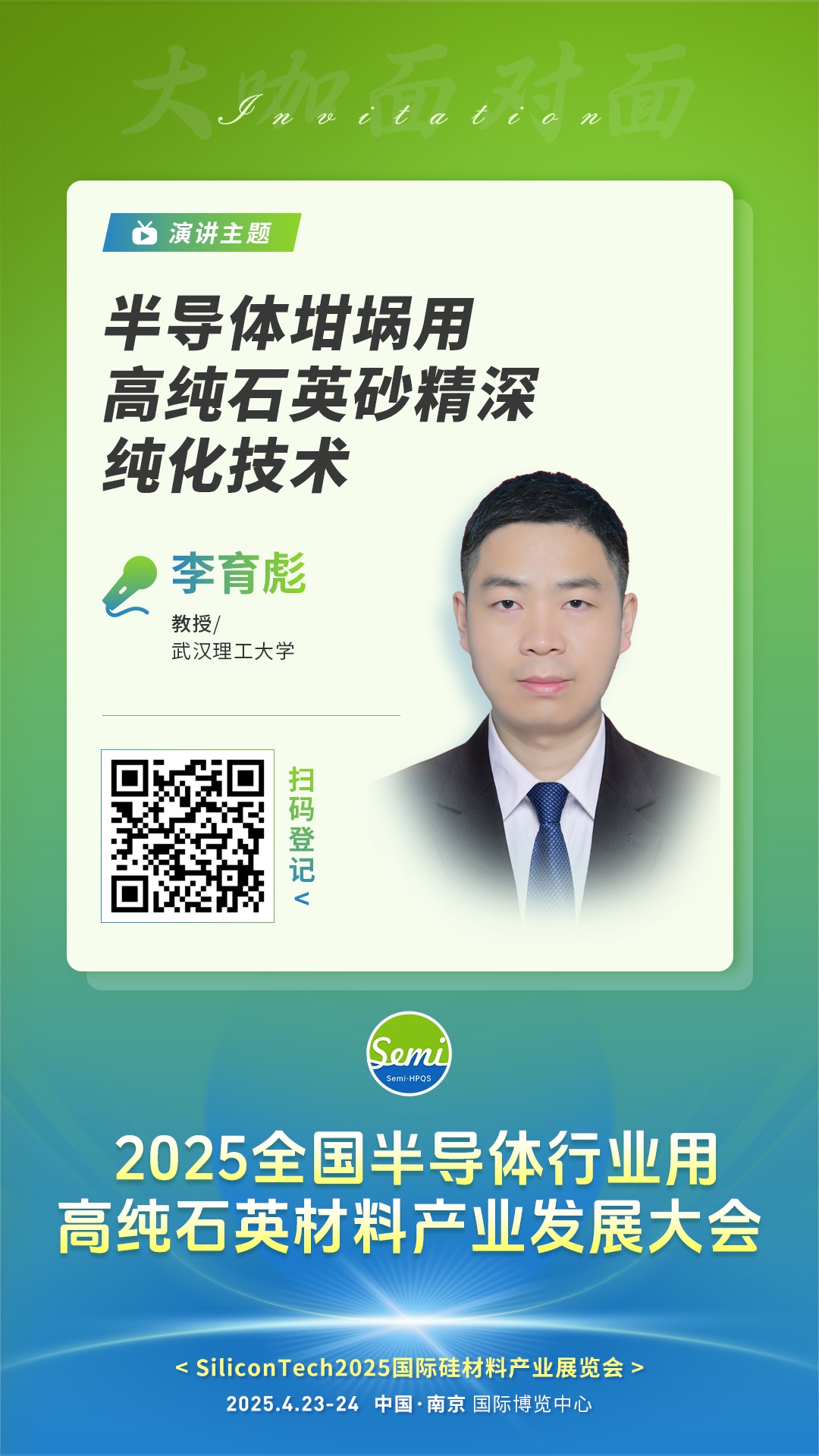 2025??3-24日,由中国粉体网、中粉会展主办的?025全国半导体行业用高纯石英材料产业发展大会”将在江苏南京召开,届时来自武汉理工大学的李育彪教授将做题为《半导体坩埚用高纯石英砂精深纯化技术》的报告、/strong>