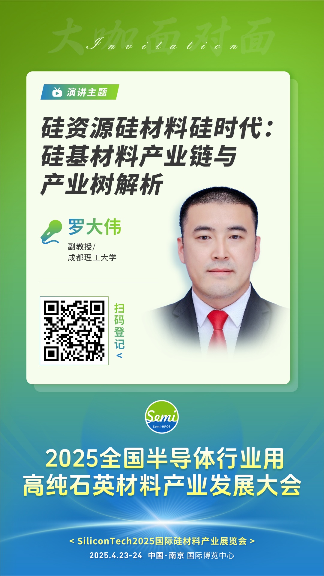 可以说,虽然硅在物质世界中已经到处都是,但它依然还可以开发出千千万万的用途,造福人类、造福世界?025??3-24日,由中国粉体网、中粉会展主办的?025全国半导体行业用高纯石英材料产业发展大会“/strong>将在江苏南京召开,届时来?strong>成都理工大学的罗大伟副教掇/strong>将做题为《硅资源硅材料硅时代:硅基材料产业链与产业树解析《/strong>的报告、br/>