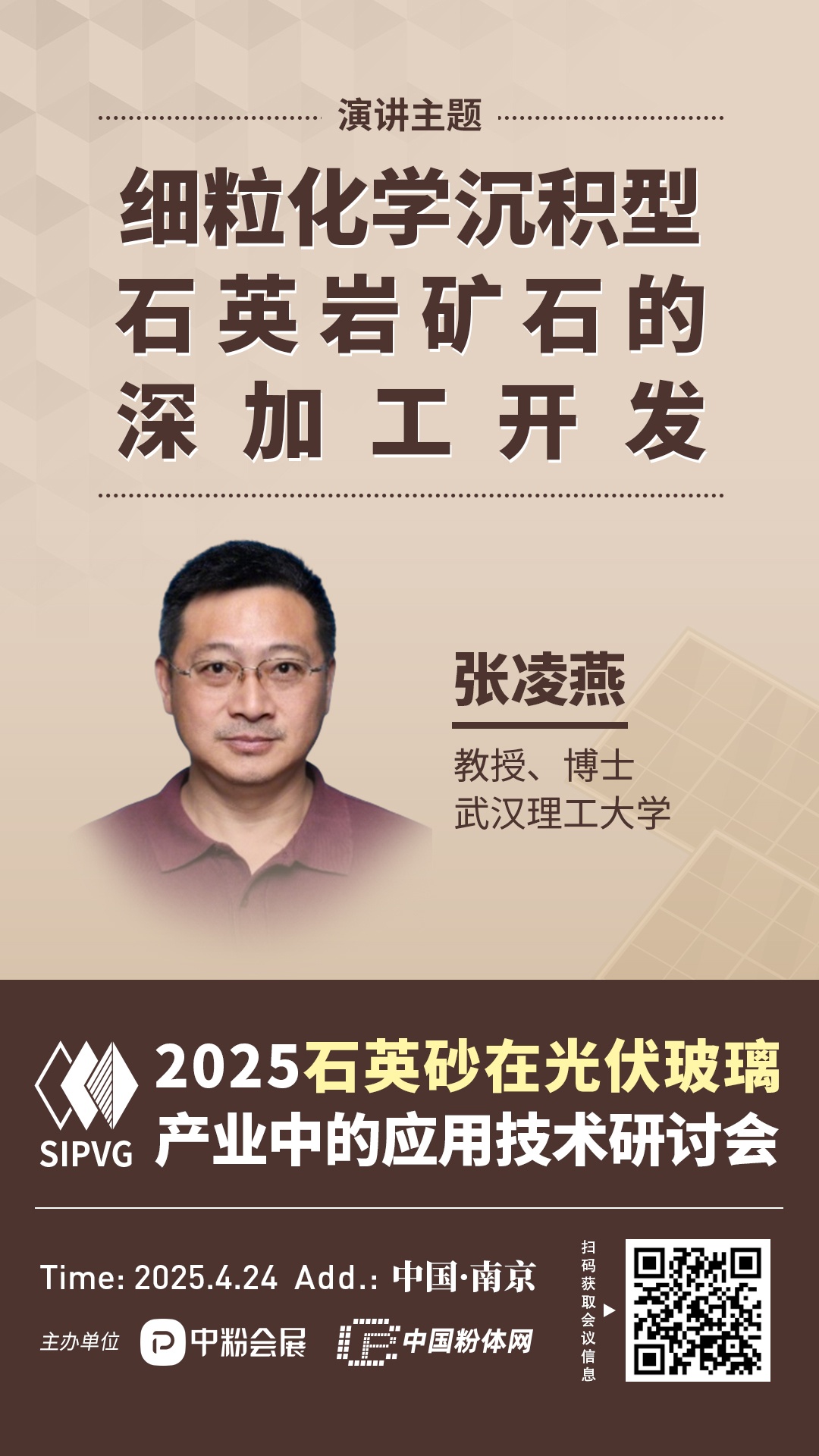 2025??4日,由中国粉体网、中粉会展主办的?025石英砂在光伏玻璃产业中的应用技术研讨会”将在江苏南京召开,届时来?strong>武汉理工大学的张凌燕教授,将做题丹strong>《细粒化学沉积型石英岩矿石的深加工开发《/strong>的报告、br/>
