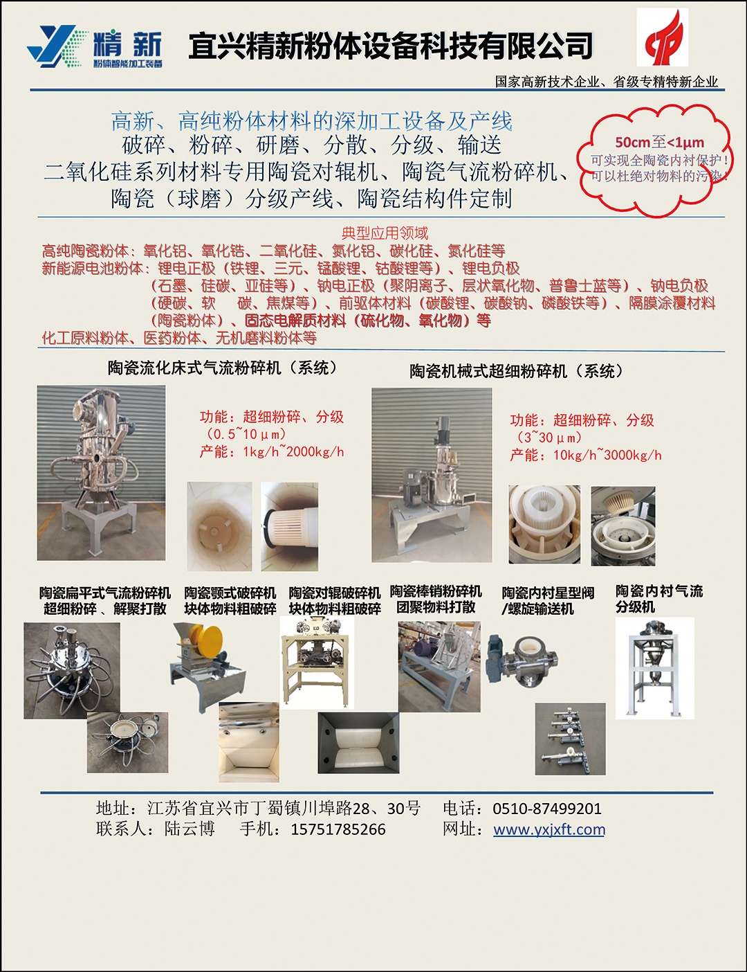 宜兴精新粉体设备科技有限公司是一家提供粉体材料自动化深加工装备和整体系统解决方案的企业,具备从研发、设计、试验到制造、安装、调试的完整服务能力。企业依托数十年的粉体装备与工程陶瓷的研发和制造经验,具有完全自主的“无污染”粉体深加工产线的生产能力,在国内外粉体材料领域有着较强的影响力、/p>