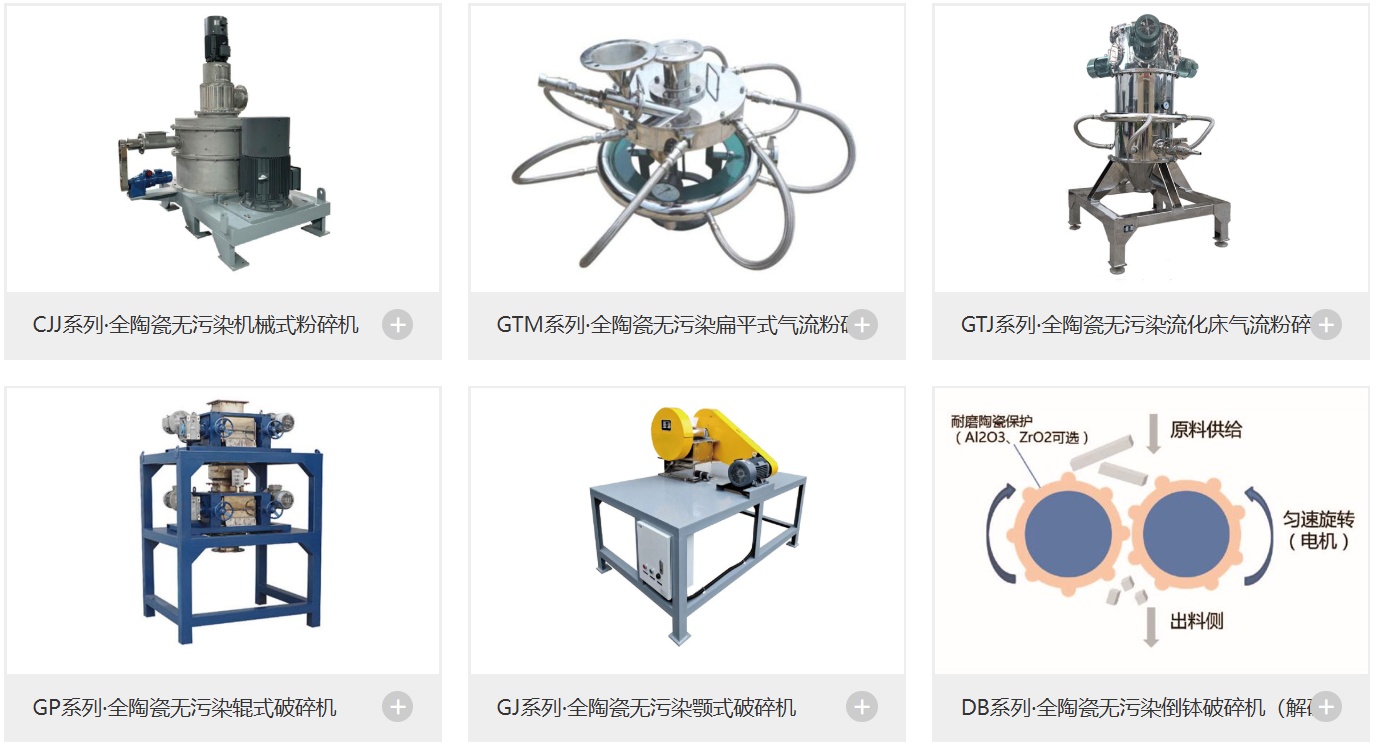 公司核心产品包括系列化的“无污染”粉体深加工装备,将耐磨工程陶瓷与机械设备结合,代表性产品有:全陶瓷流化床气流粉碎机、全陶瓷扁平式气流粉碎机、全陶瓷机械式粉碎机、全陶瓷解碎机、全陶瓷颚式破碎机、全陶瓷辊式破碎机、全陶瓷涡轮分级机、全陶瓷柱式粉碎机、全陶瓷加料机系列、全陶瓷输送管道系列、全陶瓷下料阀、全陶瓷系列混合机、全陶瓷干法搅拌砂磨机等、/p>