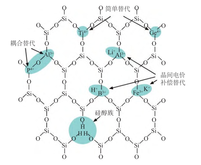 石英矿物晶格杂质元素类质同象分布示意国/span>