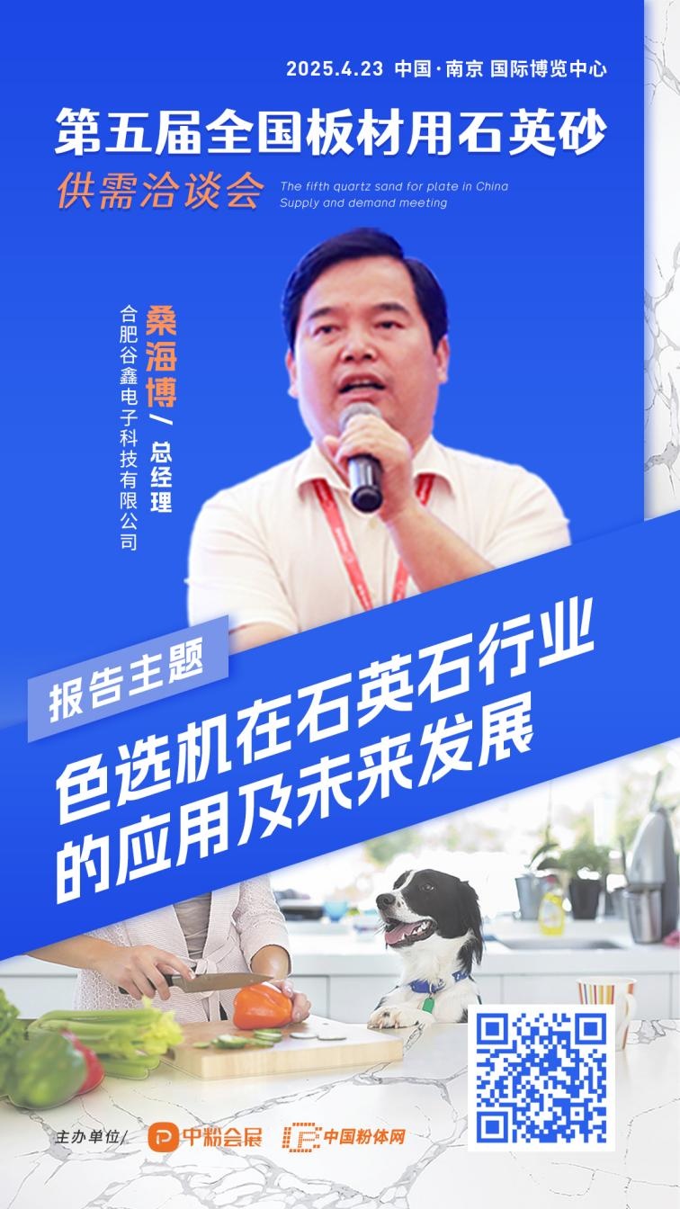 2025??3日,由中国粉体网、中粉会展主办的“第五届全国板材用石英砂供需洽谈会“/strong>将在江苏南京召开,届旵strong>合肥谷鑫电子科技有限公司总经理桑海博将做题为《色选机在石英石行业中的应用及未来发展《/strong>的报告、/p>