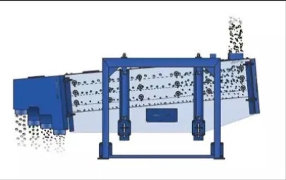 物料从顶部进入口连续进料,在摇摆筛作业下从中心扩散至整个筛网表面,较细的颗粒穿过筛网,较粗的颗粒依次向外围滑动,通过出料口排出,每层重复此筛分过程、/p>
