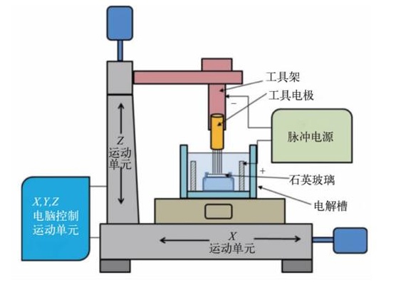 加工步骤:电化学放电加工法是一种将电火花加工(EDM)和电解加工(ECM)相结合的新型低成本玻璃微加工方法。将工具电极和对电极分别连接到电源的正、负端子上,当两个电极之间存在电位差时,工具电极周围会形成一层氢气膜将工具电极与周围的电解液完全隔离。当电位差进一步增大时,氢气膜破裂,产生电化学放电,并将玻璃融化并移除、/p>