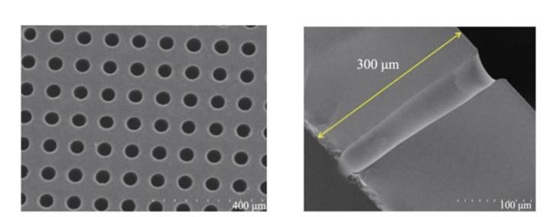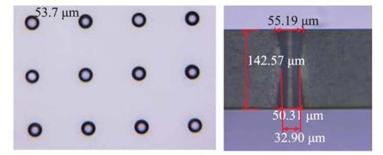 聚焦放电泔/span>制作皃/span>TGV阵列以及截面?nbsp;来源:《玻璃通孔技术研究进展《/p>