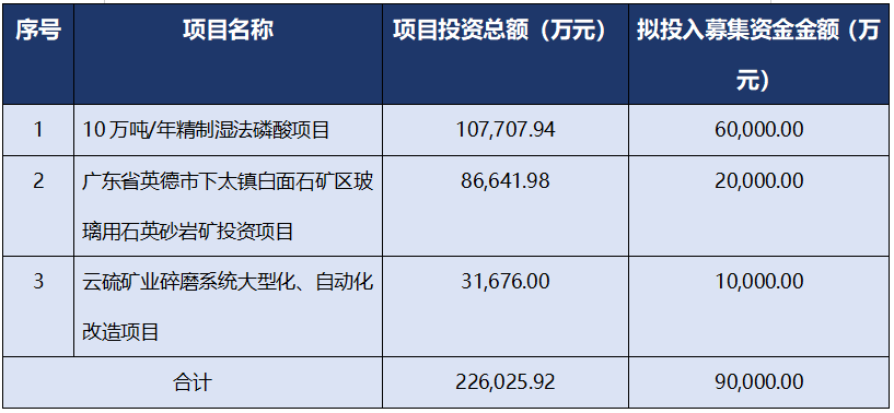 中国粉体网讯近日,广西粤桂广业控股股份有限公司发布公告称,公司本次向特定对象发行A股股票拟募集资金总额不超?0000万元,投资广东省英德市下太镇白面石矿区玻璃用石英砂岩矿投资项目?0万吨/年精制湿法磷酸项目和云硫矿业碎磨系统大型化、自动化改造项目建设、/p>