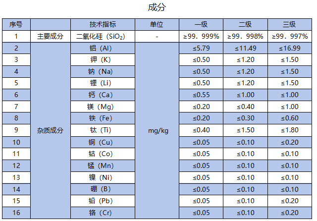 《电子级高纯石英砂(征求意见稿)》对电子级高纯石英砂的技术要求、试验方法、检验规则以及标志、包装、运输和贮存进行了详细规定、/p>