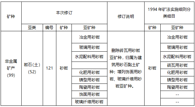 新旧矿产资源目录对照表(天然石英砂部分)
