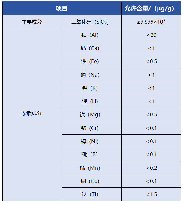 由浙江美晶新材料股份有限公司、宁夏鑫晶新材料科技有限公司、辽宁拓邦鸿基半导体材料股份有限公司、江苏泓顺硅基半导体科技有限公司共同起草的T/QGCML 4167?024《半导体石英坩埚生产用高纯石英砂》团体标准规定了半导体石英坩埚生产用高纯石英砂的术语和定义、技术要求等,文件适用于半导体石英坩埚生产用高纯石英砂。其中,高纯石英砂中二氧化硅含量应≥99.998%、/p>