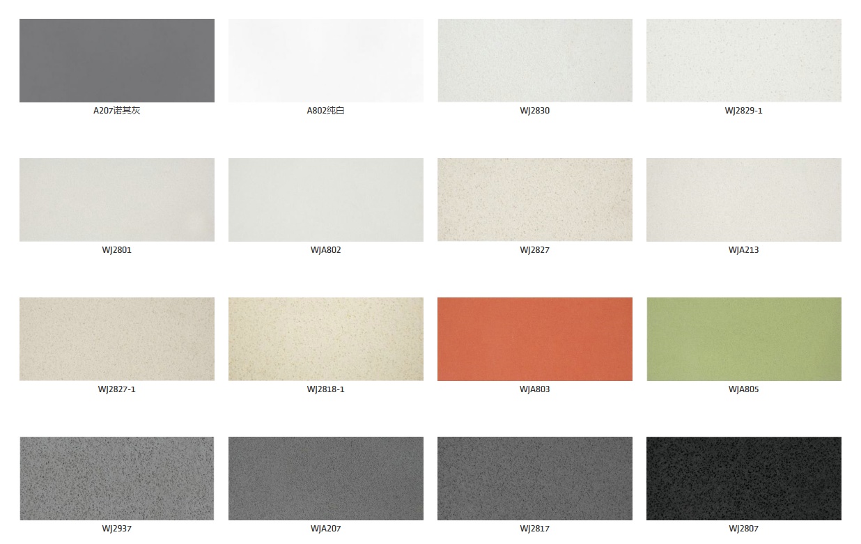 目前公司已经开发出十二大系列、超?00多个石英花色,颜色涉及到白色、米黄、灰色、黑色、红色、蓝色、绿色、黄色、粉色和棕色等等。较大规模的石英板为32001600mm,常规尺寸?020*1420mm,厚度?2-30mm,同时我们可以定制花色和尺寸。产品广泛应用于厨房卫生间台面、餐桌、茶几、窗台、吧台、门套、墙面、地面等领域,该产品是一种具有耐磨、耐压、耐酸碱、高亮度、绿色环保和无辐射等特点的新型建筑装饰材料、/p>