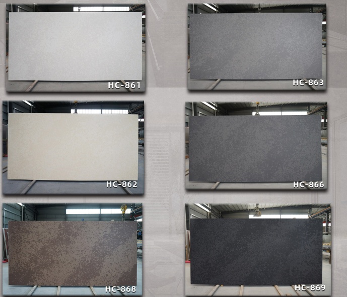 汇晟无机石英石分为花纹板、颗粒板、纯色粉板共三大系列产品。常规产品规格为:长3230×?630mm,板材厚度可选:18mm,20mm,25mm,30mm。产品检验报告的各项理化性能指标均高于相关国检标准和行业标准、/p>