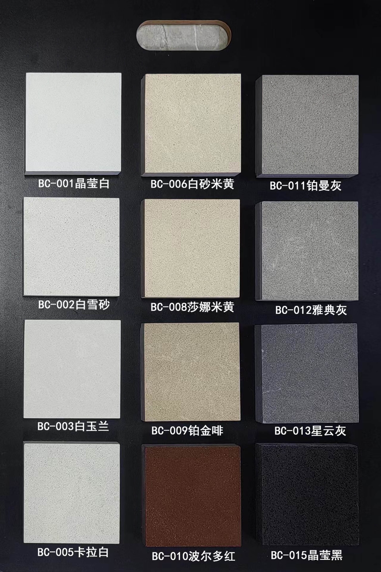 公司首创独特的无机石英石自然纹路实现了量产技术;产品添加防泛碱因子,长期发挥防泛碱作用。产品特点具有高硬度、不易弯折、不易磨损、低吸水率(?.2%-0.8%)、可承受高温、耐侯性好、便于清洁与保养、零甲醛健康无辐射等,为建筑物的室外、室内提供全方位应用,在后加工、维护环节更能节省费用、/p>