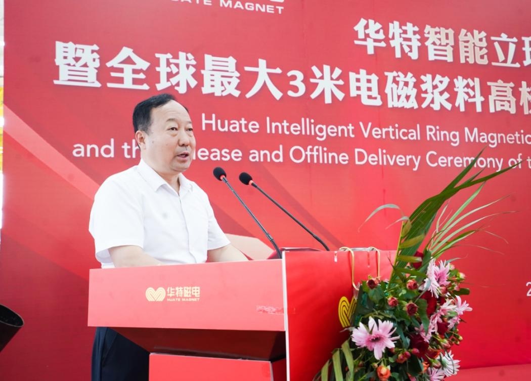 中国重型机械工业协会执行会长景晓波,中国非金属矿工业协会副会长唐靖炎,中国冶金矿山企业协会秘书长姜圣才,山东省装备制造业协会会长高玲,潍坊市人大常委会副主任、磁技术产业链“链长”扈洪波,潍坊市工信局党组成员、副局长吴国宗,临朐县人大常委会党组书记、主任田立军,临朐县委常委、副县长周发家,全国人大代表、山东鲁北企业集团董事长吕天宝,中国冶金矿山企业协会运营总监、双碳工作委员会秘书长刘效良,中钢集团马鞍山矿山研究总院股份有限公司出版传媒中心主任赵福刚,世界生产力科学院院士郑铁民,潍坊市磁技术产业专班专家顾问马中平,龙岩市简一新材料有限公司董事长张岚等领导出席活动。俄罗斯自然科学院外籍院士,山东省政协常委、华特磁电集团董事长王兆连参加活动并致辞,潍坊市人大代表、华特磁电集团执行总裁王前主持活动、/p>