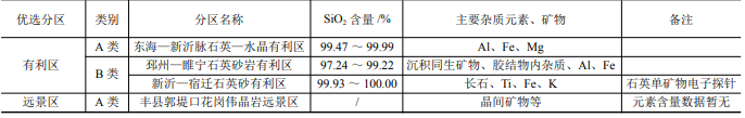 苏北地区高纯石英硅质原料有利区、远景区石英资源基本特征?/p>