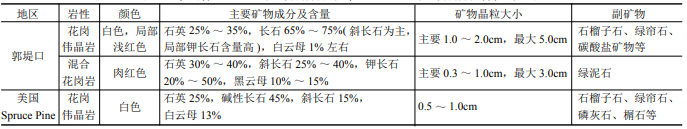 丰县郭堤口地区花岗伟晶岩与Spruce Pine花岗伟晶岩特征对比表