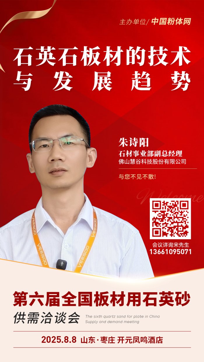 2025??日,由中国粉体网主办皃strong>第六届全国板材用石英砂供需洽谈伙/span>将在山东枣庄召开+strong>佛山慧谷科技股份有限公司石材事业部副总经理朱诗阳将做《石英石板材的技术与发展趋势《/strong>的报告,围绕行业痛点深入解析未来技术方向,诚邀行业同仁共探发展新机、/p>