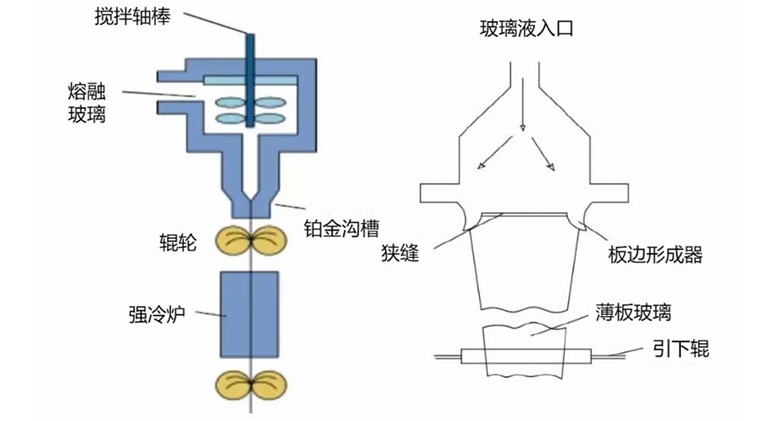 狭缝下拉法生产示意图 来源:《柔性玻璃狭缝下拉法成形工艺模拟研究》(吴建磊)